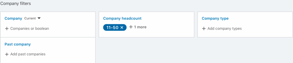 Revenue – There is no revenue filter on LinkedIn. It sucks, but it’s the way things are. We get around this by using the company headcount filter to search for companies with a specific revenue. More on that in the “Company Headcount” section below.