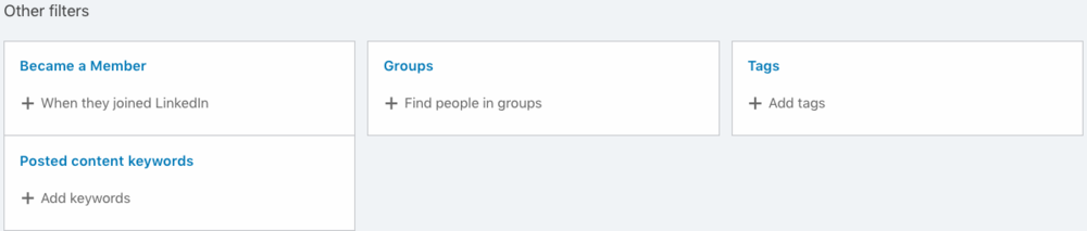 Became a Member – We generally never use this filter. It’s also pretty restrictive, only giving you a drop-down set of options, with the farthest back date they joined LinkedIn only being 3 months ago.